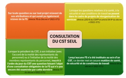 Sauf lorsque les questions relevant de ces thématiques se posent dans le cadre plus global de projets de réorganisation de services pour lesquels le CST sera consulté.