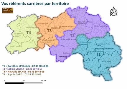 L’adresse mail reste générique (grh@cdg61.fr) et chaque référent a une ligne téléphonique directe . Les numéros de téléphones de chaque référent apparaissent sur la carte.