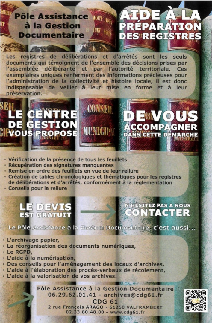 Le devis est gratuit, pour plus d’informations, vous pouvez contacter le service Archives par mail : archives@cdg61.fr.